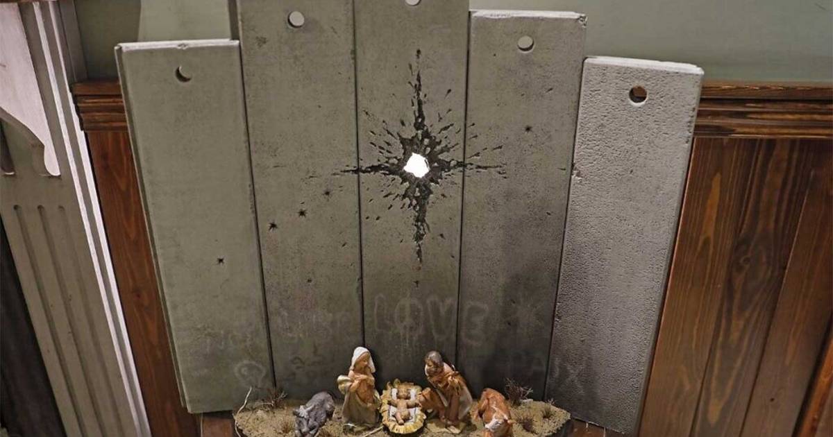 Un diminuto nacimiento de Navidad flanqueado por pequeños fragmentos de muro atravesados por un obús: la última obra del artista Banksy fue desvelada ayer en la simbólica ciudad de Belén, en la Cisjordania ocupada.