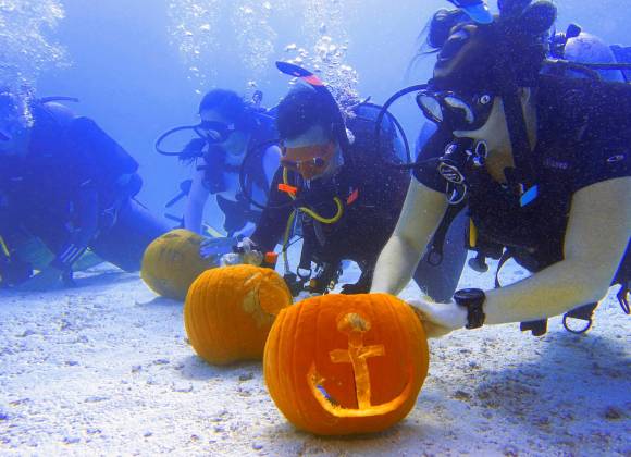 El concurso anual de tallado de calabazas bajo el agua en Key Largo se programa alrededor de las tradicionales celebraciones de Halloween (Noche de Brujas o Víspera de Todos los Santos) de octubre.