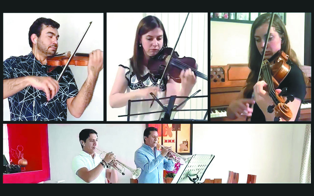 Así es como algunos miembros de la Camerata de Coahuila, desde sus hogares, montaron un extracto del Huapango de José Pablo Moncayo. Cada uno se grabó a sí mismos interpretando su parte y luego fue el chelista y fotógrafo Johanan Eager quien se encargó de reunir los clips y hacerlos sonar como un todo.