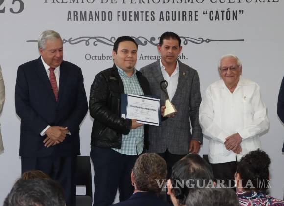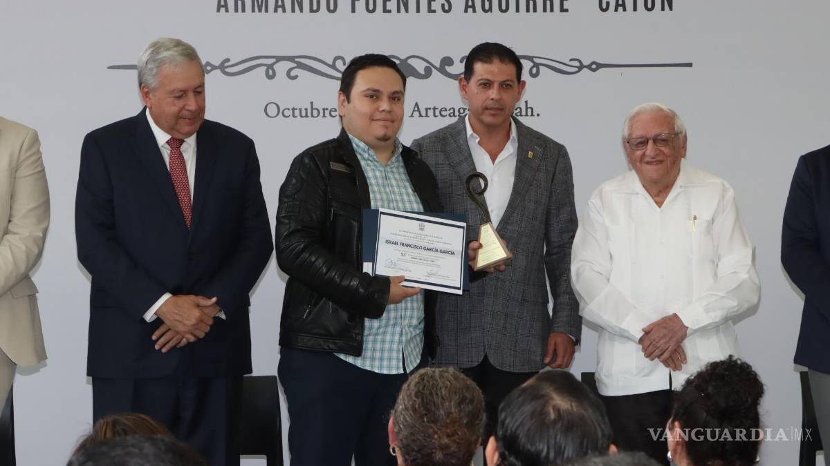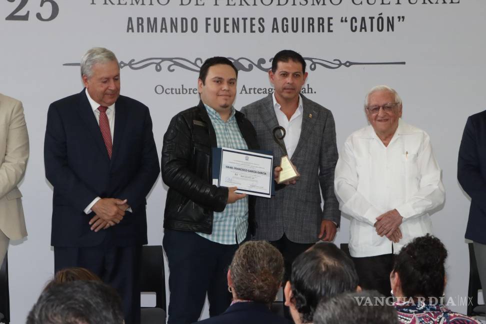Con la presencia del ahora alcalde de Saltillo, así como del actual rector de la universidad, y del cronista de la ciudad, Armando Fuentes Aguirre “Catón”, en cuyo nombre se otorga este reconocimiento, el periodista de VANGUARDIA y editor de Vmás, Israel Francisco García García, fue premiado con el primer lugar en la categoría de Nota.