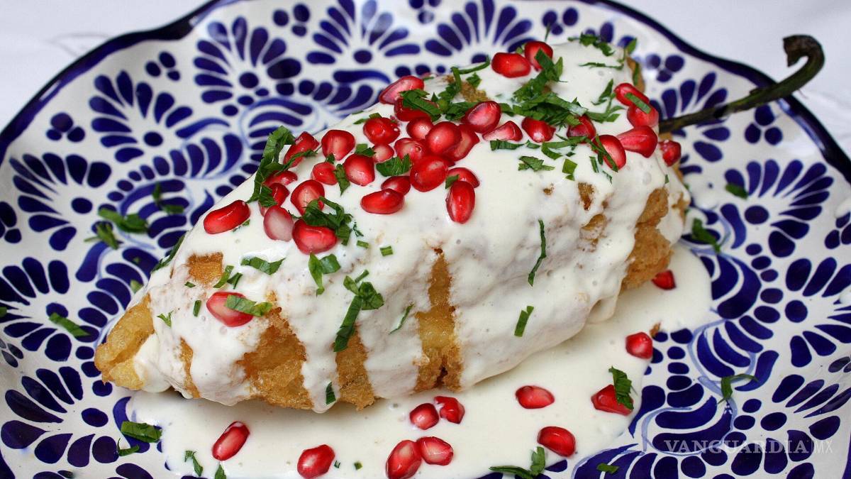 Con una historia de la realidad al mito se dice que las monjas Clarisas –otros cuentan que eran las Agustinas– desarrollaron esta receta para la llegada del ejército trigarante con Iturbide al frente. La cocina conventual tenía elementos muy simbólicos, ya que en sus saberes y sabores tenían dulzores en sus platillos salados. Es más, se dice que anteriormente fue un postre que se rellenaba de frutos y se bañaba con salsa de nuez.