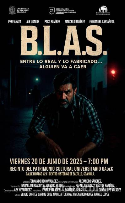 “B.L.A.S.” es el nombre de este proyecto realizado en colectivo, el cual se inspira en una conocida leyenda saltillense y que se estrenará el viernes en el Recinto del Patrimonio Cultural Universitario en punto de las 19:00 horas.
