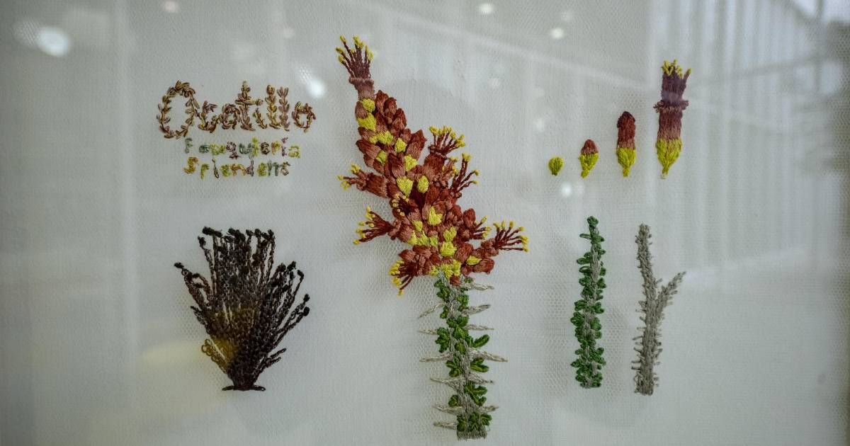 La primera etapa de resultados se inauguró este miércoles 4 de diciembre en la Infoteca Arteaga de la Universidad Autónoma de Coahuila, con la muestra de ocho piezas de bordado y ocho fotografías de naturaleza, producto de la colaboración entre investigadores de los cuerpos académicos “Cultura visual” y “Agrobiotecnología” de la UAdeC, así como del Centro de Estudios e Investigaciones Interdisciplinarios, el Centro de Investigación y Jardín Etnobiológico de Viesca (CIJE) y las artistas Laila Castillo, Talía Barredo García, Jeisel Hernández y Susana Mercado.