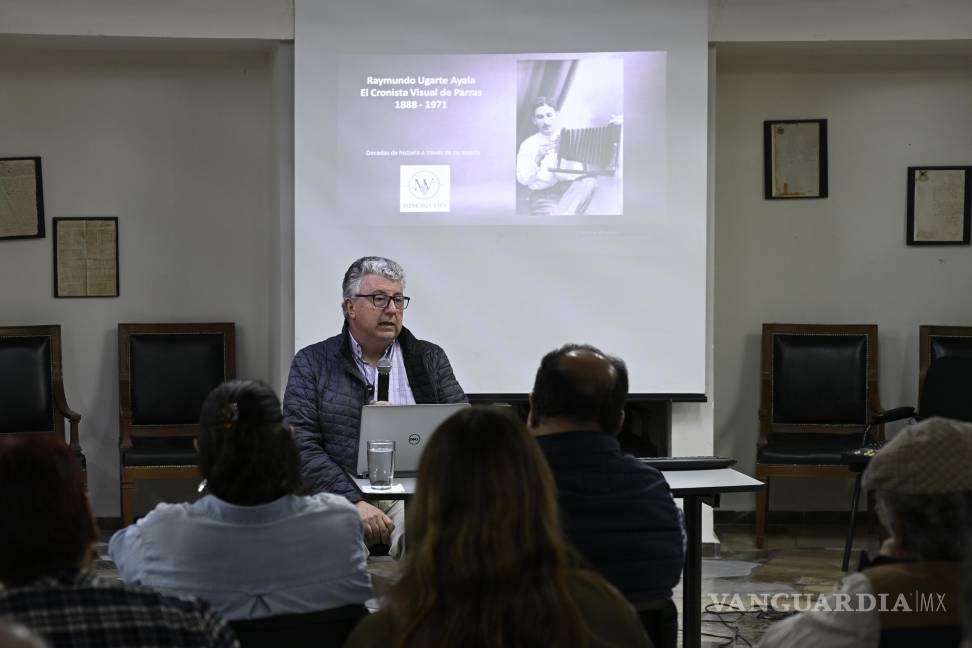 Este jueves en el Archivo General del Estado, el historiador Ariel Gutiérrez Cabello compartió con el público saltillense la importancia del rescate del acervo fotográfico de Raymundo Ugarte, quien con su lente capturó la vida e historia de Parras de la Fuente.