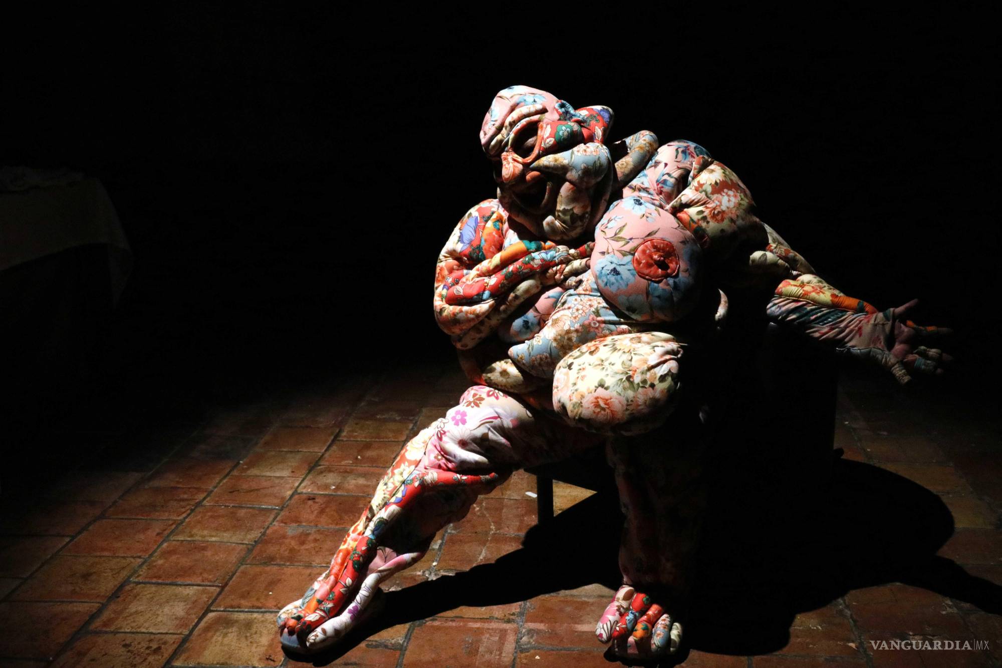 Las flores poblaron “la piel” del traje que la actriz portó la primera mitad de la obra, hecho de tela y lleno de bultos y bolsas, como el cuerpo con el que alguna vez vivió. Sus anécdotas, contadas de manera no lineal, nos muestran su relación con la cultura fronteriza, el spanglish, la violencia y, por supuesto, su relación con la comida y con su cuerpo, desde la niñez hasta el momento.