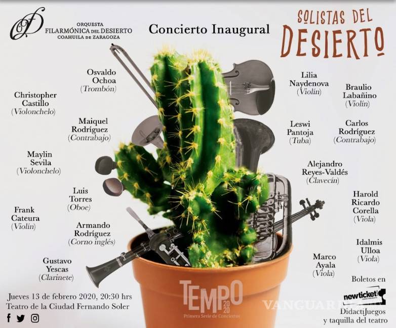 Desde hace cinco años la Orquesta Filarmónica del Desierto ha madurado poco a poco. Su sonido se ha unificado, sus músicos han progresado y el producto es cada año más profesional, pero pocas veces hemos tenido la oportunidad de escuchar la calidad de las partes que le conforman. Esta noche en punto de las 20:30 horas en el Teatro de la Ciudad Fernando Soler 14 miembros de la OFDC saldrán al escenario para interpretar algunas de sus piezas favoritas y con las que demostrarán su talento en el concierto “Solistas del desierto”. Ya los hemos escuchado como parte del grupo y ahora podremos hacerlo de manera individual pero para conocerlos mejor en VANGUARDIA conversamos con trece de ellos y por eso aquí te presentamos un poco de sus historias, quiénes son, de dónde vienen, cuál ha sido su experiencia como parte de este conjunto y algunos datos sobre las obras que presentarán. Leswi Pantoja Tuba 7 meses con la OFDC Parte del Sistema de Orquestas de Venezuela, donde tocó en la Orquesta Simón Bolívar por 18 años, bajo la batuta de Gustavo Dudamel. “Aparte de que tocamos con el maestro Gustavo hicimos conciertos con maestros muy importantes del mundo”, recordó, “fueron muchos viajes, muchas anécdotas, una historia muy interesante con esa orquesta”. Inició en la tuba por insistencia de su padre, quien al ver pocos de estos instrumentistas en aquella época quiso apoyar la causa con su hijo. “Ahorita me encanta, me fascina, pero cuando mi papá me puso yo no quería, porque era muy grande. Pero ya después le agarré mucho cariño”. Esta noche interpretará el Concierto para Tuba de Vaughan Williams, escrito para el tubista principal de la London Symphony Orchestra, Philip Catellinet, en 1954.