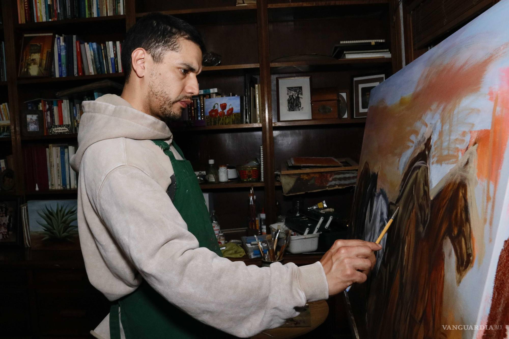 “Crecí con mis abuelitos y ahí hicieron lo que pudieron”, compartió el pintor para VANGUARDIA, “pero de niño era muy curioso y con lo que tenía a la mano me ponía a dibujar lo que encontraba en el patio de mis abuelos. Cuando entré a la Narro me metí a un taller de pintura y fue la primera introducción formal que tuve, porque no sabía de los materiales, hasta entonces yo a puro lápiz y pluma. De ahí me empezó a llamar la atención la pintura y empecé a comprar materiales, libros y con el internet a practicar solo”.