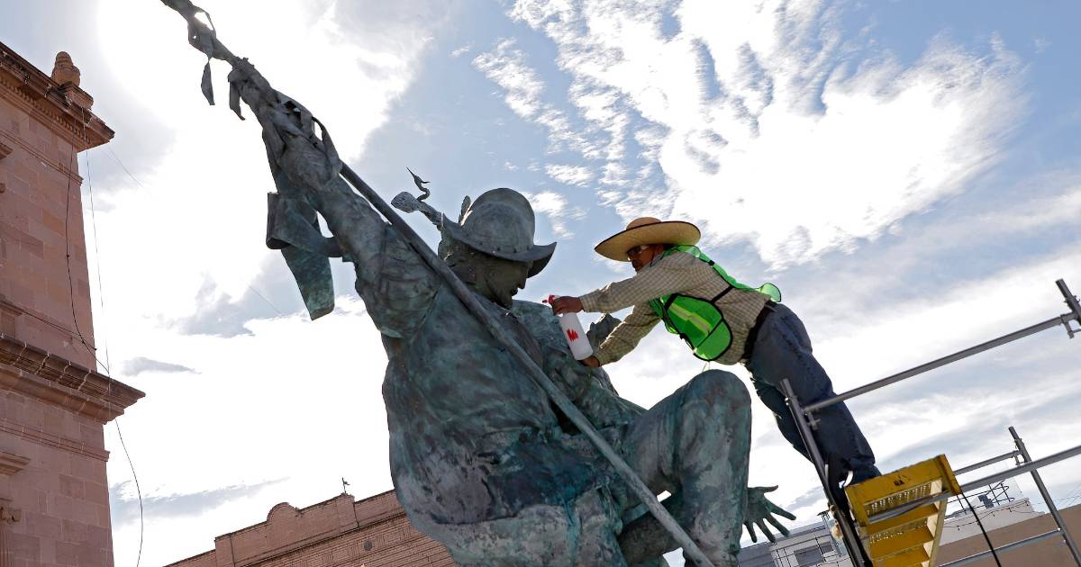 La labor, comisionada por el Gobierno Municipal de Saltillo a través de la dirección del Centro Histórico, está dirigida por el escultor Alejandro Fuentes Quezada, quien explicó para VANGUARDIA que “estamos retirando el sarro que se ha formado en la superficie desde el último procedimiento que le hicimos”.
