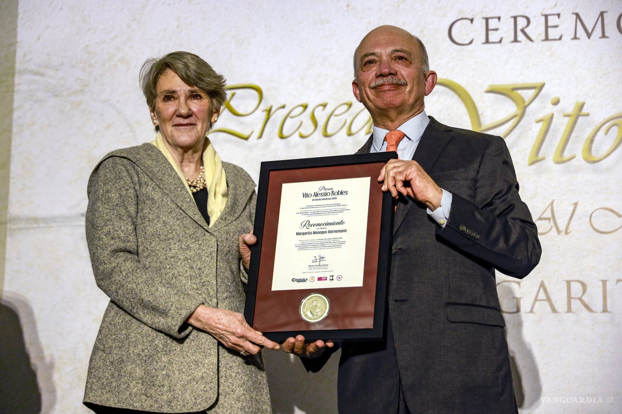 Con la entrega de la Presea Vito Alessio Robles al Mérito Histórico a la investigadora Margarita Menegus Bornemann, el Gobierno del Estado de Coahuila, a través de la Secretaría de Educación y el Centro Cultural Vito Alessio Robles (CECUVAR), abrieron un diálogo sobre la historia de las culturas indígenas en México.