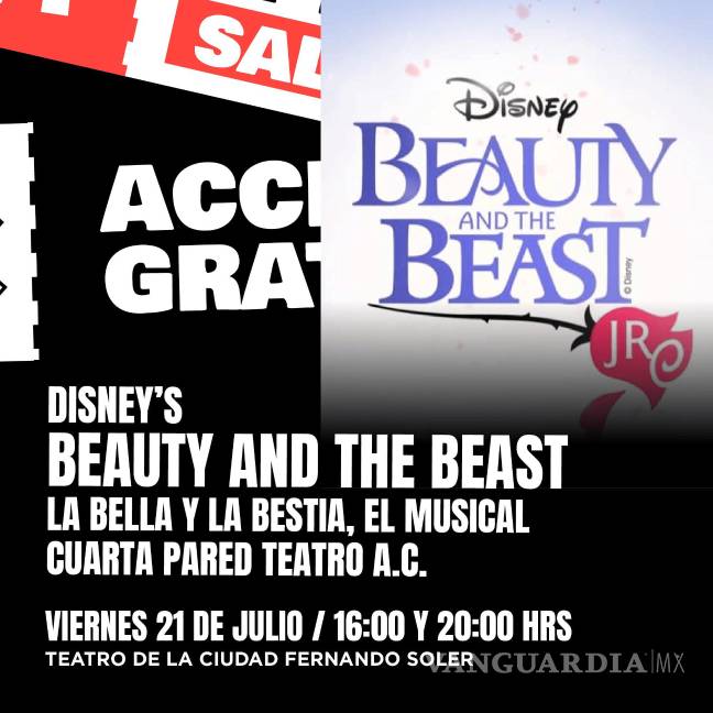Si eres fanático de los musicales entonces marca en tu calendario la fecha del 19 de julio en el mismo horario. Ese día se entregarán los pases para el espectacular musical “La Bella y la Bestia jr”, el cual se presentará a las 16:00 y 20:00 horas el viernes 21 de julio, también en el Teatro de la Ciudad.
