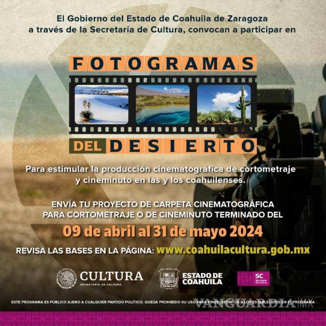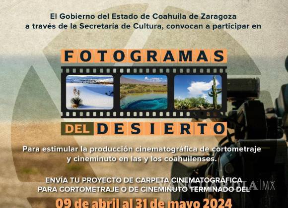 La primera convocatoria es para Fotogramas del Desierto, anteriormente llamada Proyectos Cinematográficos en Corto, que otorgará 2 estímulos de 160 mil pesos en la categoría de Creador/a con Trayectoria y dos más de 25 mil pesos en Cineminuto, enfocado en incentivar la producción cinematográfica en jóvenes de 15 a 29 años.