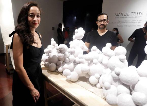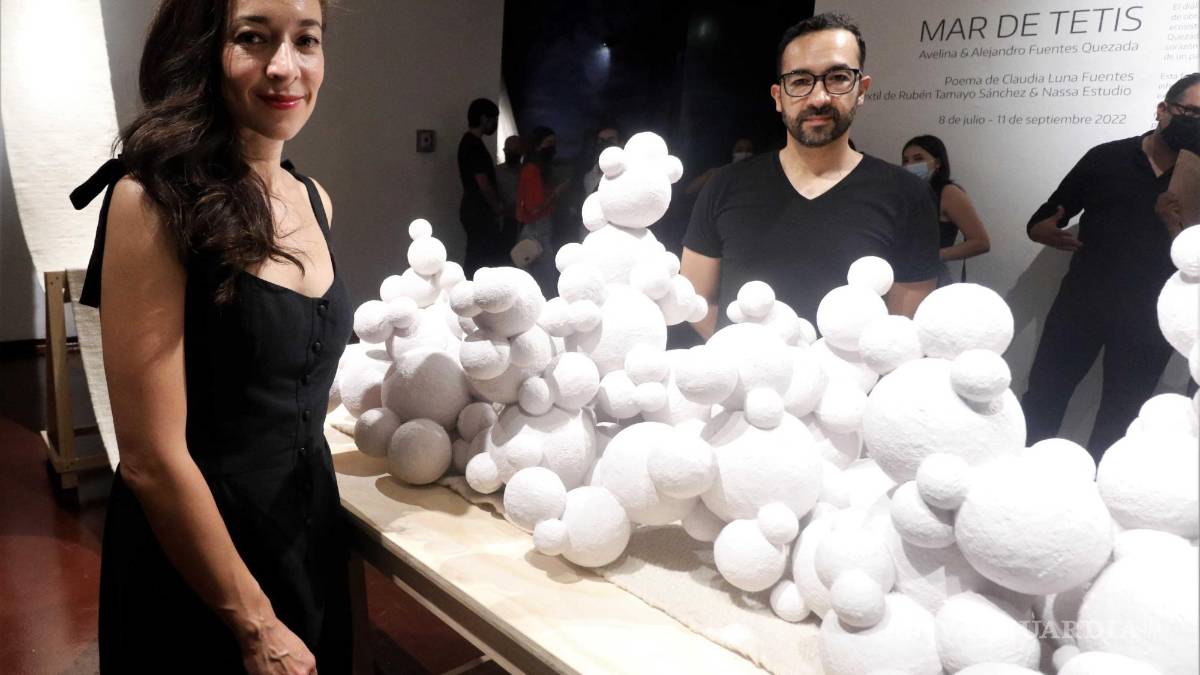 Los hermanos Avelina y Alejandro Fuentes Quezada también reconocen la belleza de esta realidad, y así lo exploraron en la exposición “Extinción continua”, que estuvo en el Instituto Cultural de México en Francia el año pasado, y de la cual se desprende ahora la muestra “Mar de Tetis”, que inauguraron el viernes 8 de julio en la galería del Pabellón 2 del Museo del Desierto.