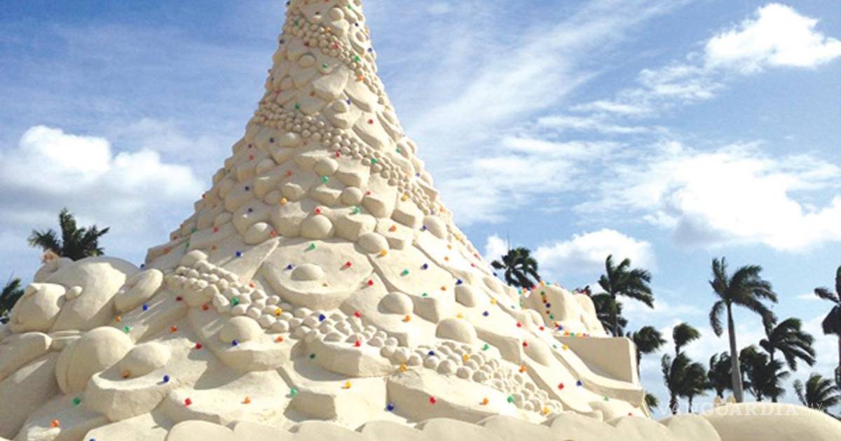 La playa de Palm Beach, en Florida, encontró una manera muy tropical de celebrar la navidad, con la escultura de un pino navideño hecho con arena de mar. El “árbol” pesa 700 toneladas y se alza a poco más de 10 metros, además de que cuenta con una bella iluminación para quienes deciden visitar la playa por la noche.