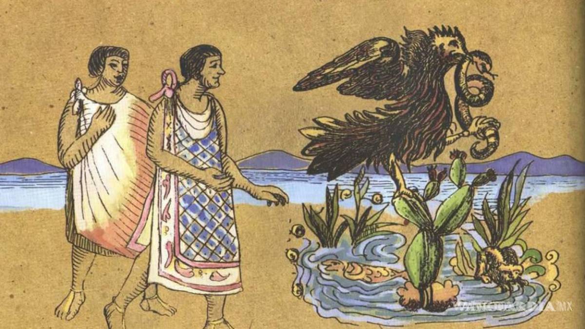 En su éxodo desde la mítica Aztlán, el pueblo mexica llegó a un lago, donde vieron la señal que el dios Huitzilopochtli les había indicado para fundar su ciudad: Un águila, posada sobre un nopal, devorando a una serpiente.
