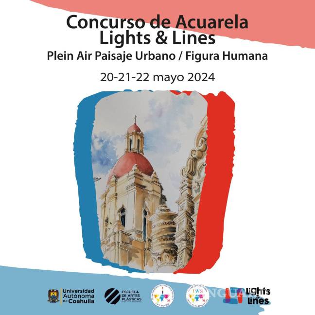 El Concurso de Acuarela “Lights and Lines” Plein Air Paisaje Urbano y Figura Humana, que se llevará a cabo del 20 al 22 de mayo en Saltillo, convocará a artistas de todas partes, para crear el mejor paisaje al aire libre del Centro Histórico de la Ciudad.