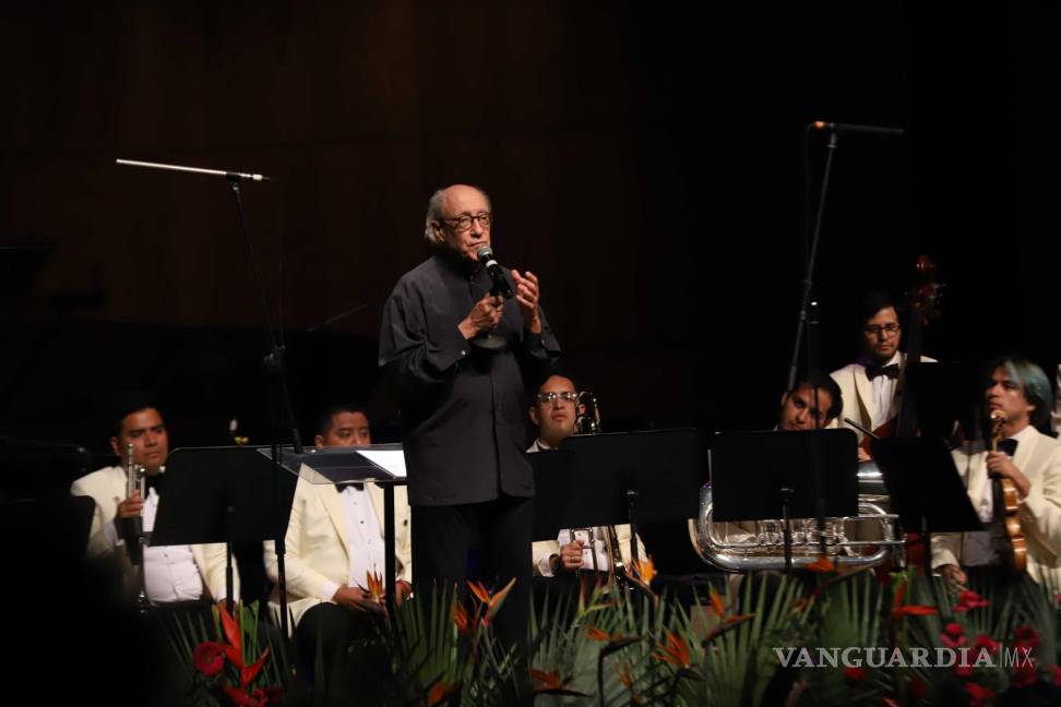 El director huésped destacó que la orquesta no tiene chelos ni violas sino violines y bajos haciendo casi una referencia a una orquestación de mariachi.
