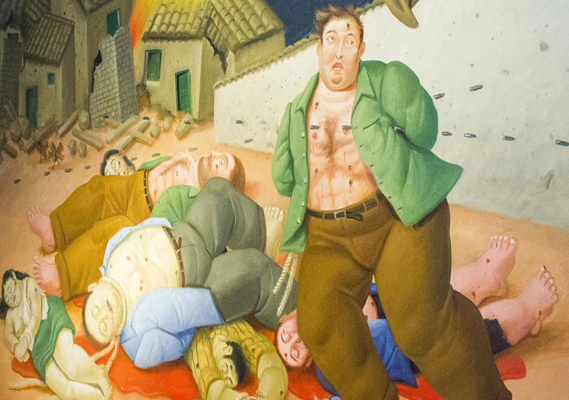 La exposición “Testimonios de la barbarie” era una colección itinerante del Museo Nacional de Colombia, que el pintor realizó entre 1999 y 2002, dejando un poco de lado su conocido estilo lúdico para abordar la violencia que vivió su país natal, Colombia, en aquella época.