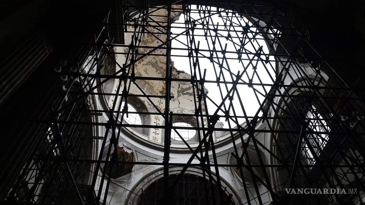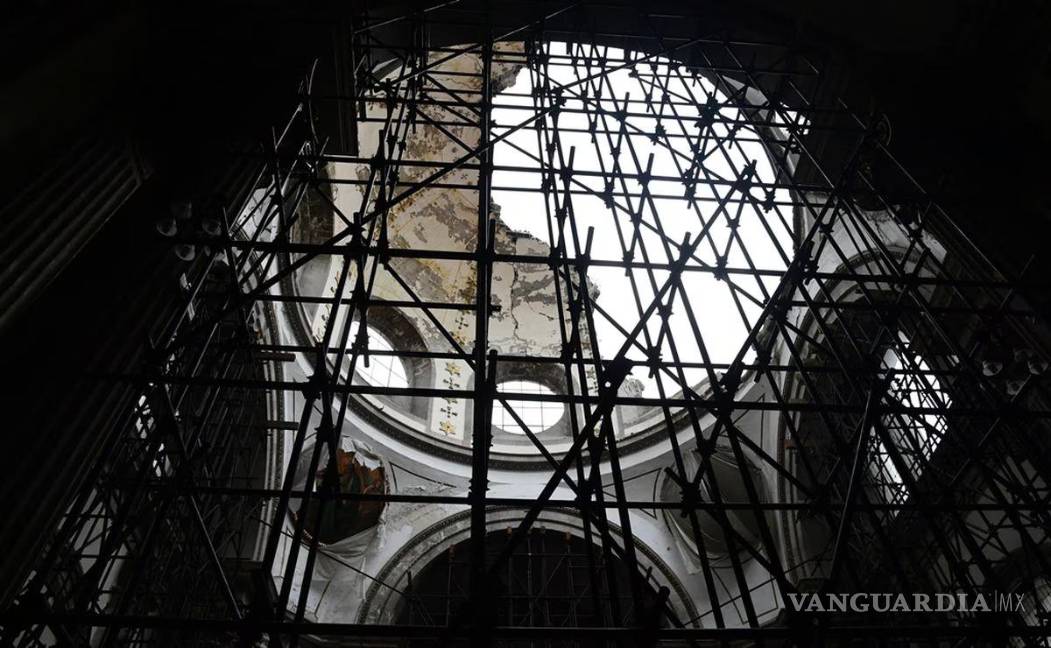 ”Estamos trabajando solamente en arreglar la fachada y la nivelación de los cimientos hundidos, no podemos atender la cúpula porque la iglesia se estaba hundiendo, entonces ya casi finalizamos la primera etapa; ya en una segunda parte, ahora sí, comenzaremos con la cúpula”, dijo José Luis López, encargado de las obras de restauración.