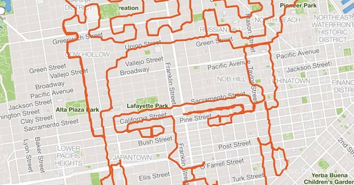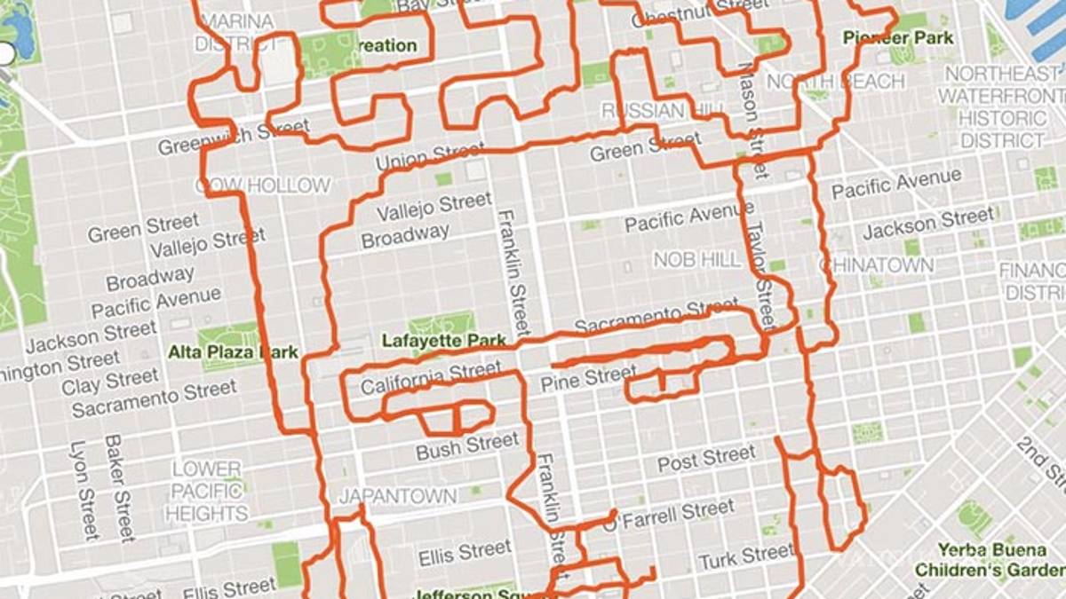 El corredor visualiza la ilustración y con un mapa traza la ruta que seguirá, el resto lo realiza corriendo por las calles de San Francisco, California.