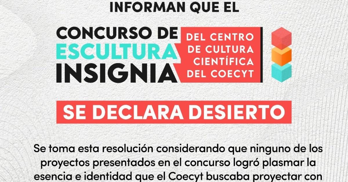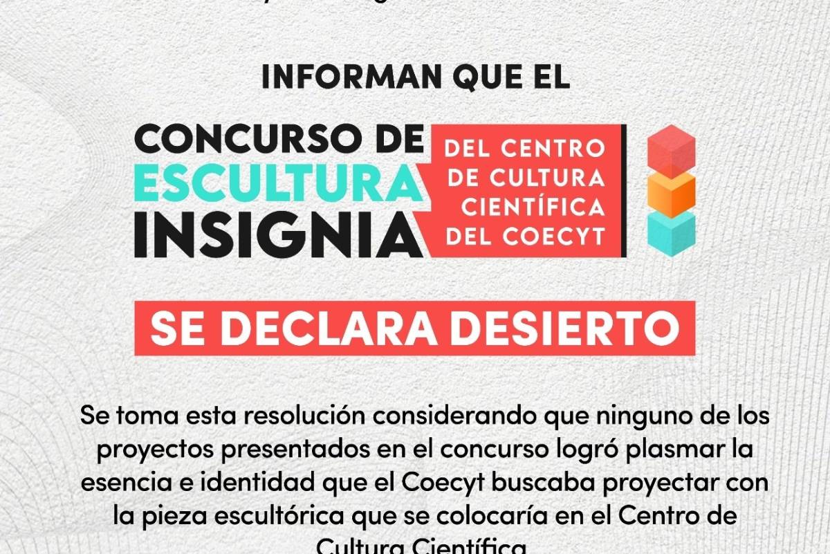 A pesar de esto, este martes las instancias convocantes dieron a conocer que el premio había sido declarado desierto, puesto que “ninguno de los proyectos presentados en el concurso logró plasmar la esencia e identidad que COECYT buscaba proyectar con la pieza escultórica que se colocaría en el Centro de Cultura Científica”.