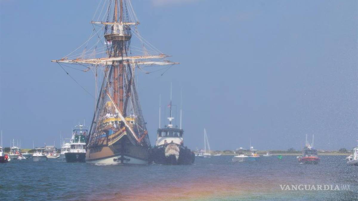 El Mayflower II, que es una réplica exacta del barco que en 1620 transportó a los primeros colonos desde Inglaterra a Norteamérica, regresó tras una restauración de tres años al puerto de Plymouth (Massachusetts), el mismo lugar al que hace 400 años llegaron los colonos.