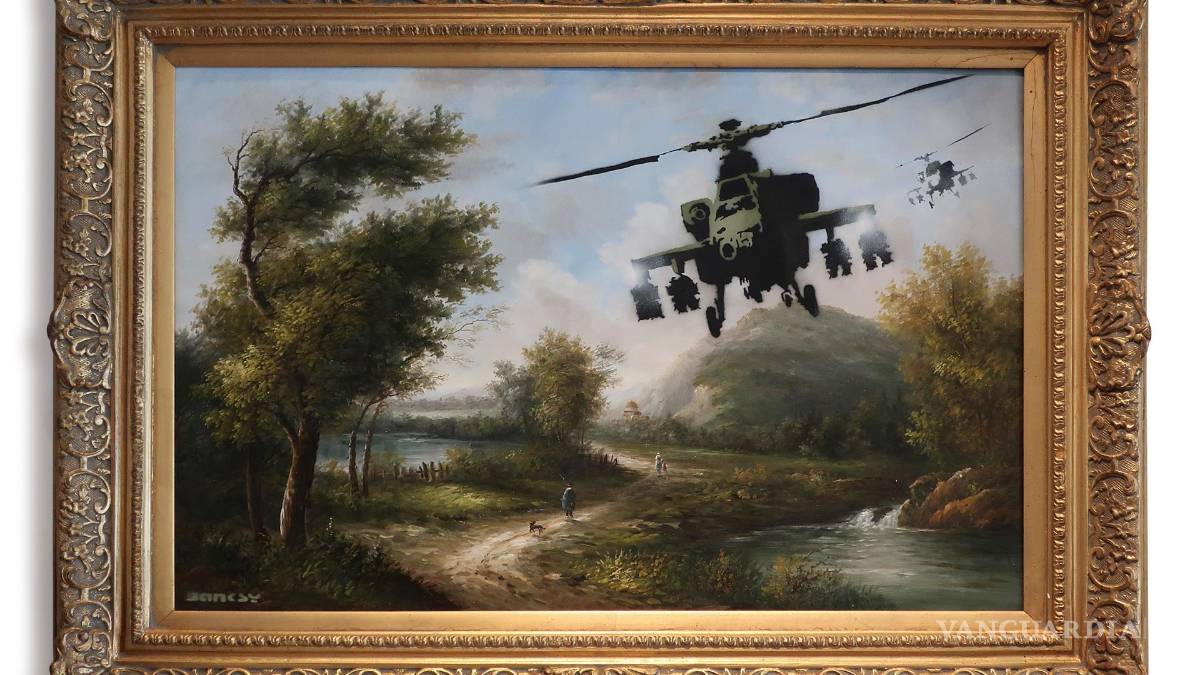 En un Sotheby’s, la empresa informó que se trata de versiones del grafiti “Girl with Balloon”, que muestra a una niña con la mano extendida hacia un globo en forma de corazón que se lleva el viento; “Kissing Coopers”, dos policías británicos besándose; y “Vandalised Oils (Choppers)”, donde aparecen dos helicópteros militares sobre un bucólico paisaje.