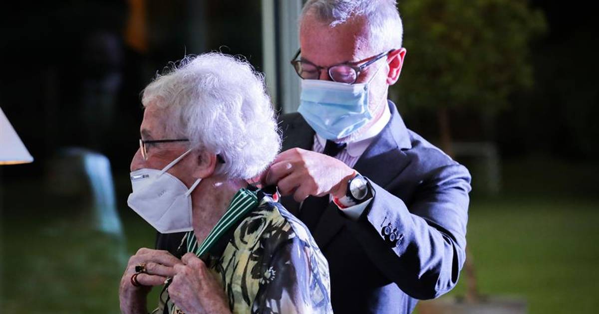La poeta uruguaya Ida Vitale visiblemente emocionada recibió la condecoración en Montevideo con el grado de Commandeur de la Orden des Arts et des Lettres que es concedida por el Ministerio de Cultura francés.