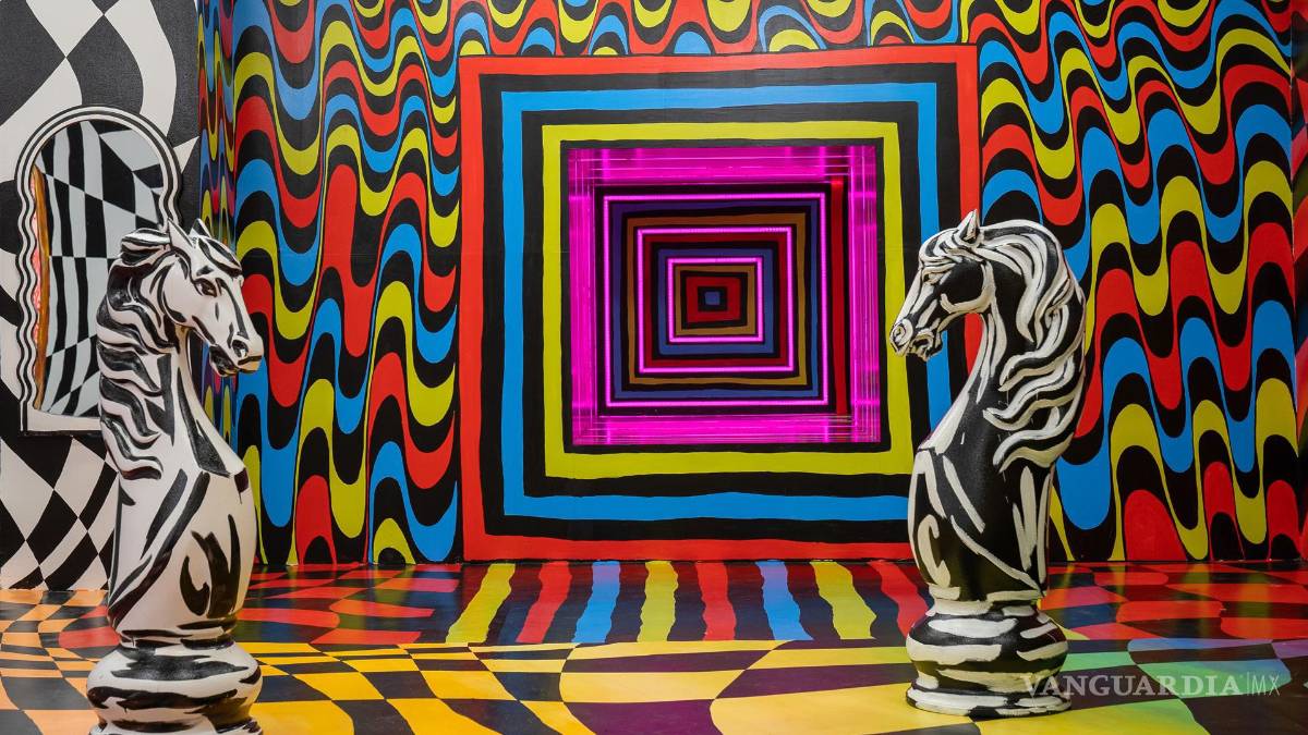 “Quiero que las personas que vengan a la exposición se maravillen y experimenten una sensación de asombro. Quiero que se pierdan en el arte y que sean realmente transportados a este mundo de ensueño”, dice a EFE la artista sentada entre dos caballos de ajedrez y un túnel psicodélico iluminado por tubos de neón.