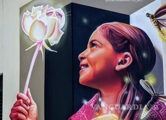 La obra de Del Rocío muestra a una niña sonriente y rodeada de luces, una flor lumínica y luciérnagas, en un mensaje que busca hablar de “energía interior que tenemos” y está nominada junto a otra pieza de la artista, “Renacer sostenible”, que pintó en la Ciudad de México, así como dos más creaciones de artistas mexicanos.