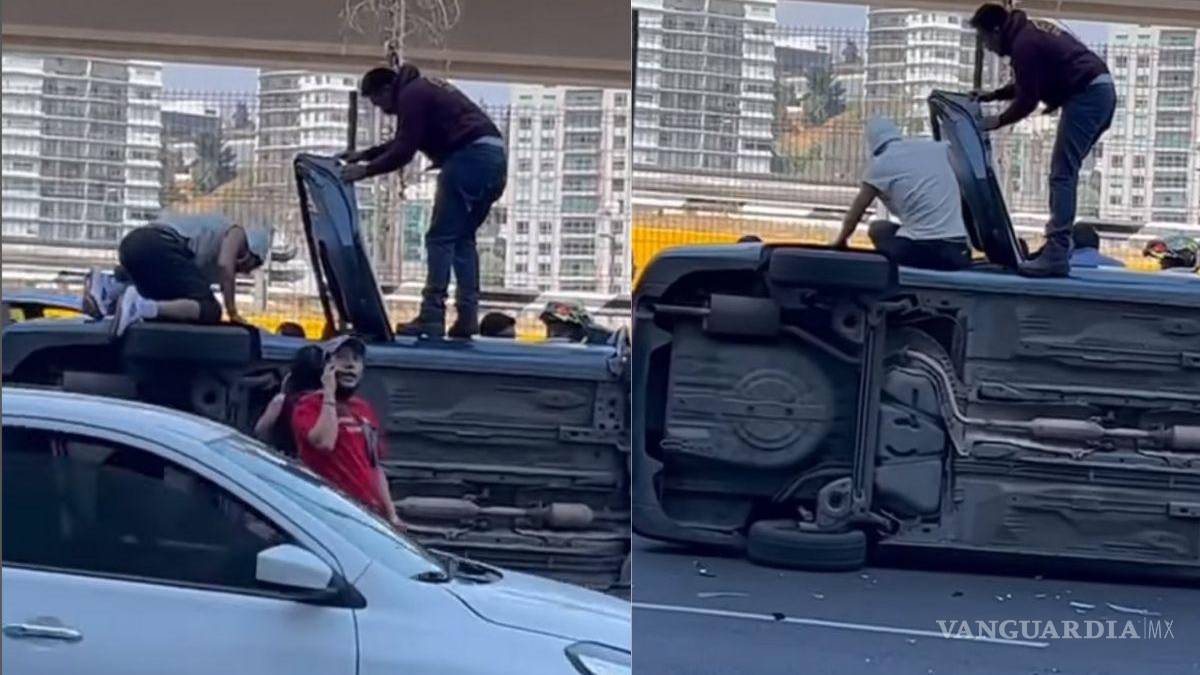 En el video que Consuelo Duval difundió en redes sociales se puede ver un auto volcado y su hijo Michel Duval se sube al auto volteado, abre la puerta del vehículo e introduce la mitad de su cuerpo para primero sacar a una niña y después a un niño.
