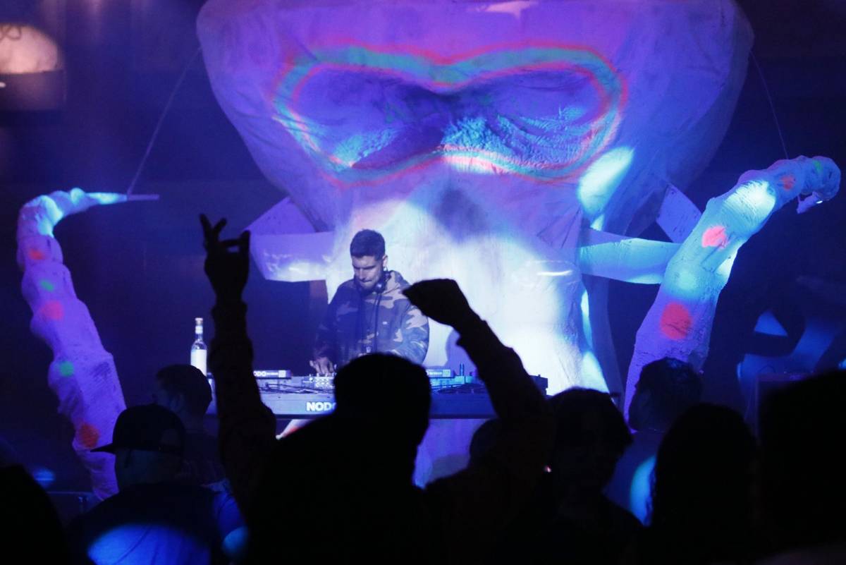 Mientras sonaba más música en el centro del lugar, luces, humo y claro los anfitriones: Pico de Pato, además de los esqueletos del Tiranosaurio rex, de un Hadrosaurio y un temible Quetzalcoatlus. Desde la parte alta, el DJ ponía a bailar y convertía esa parte del recorrido en un gran camino imperdible.