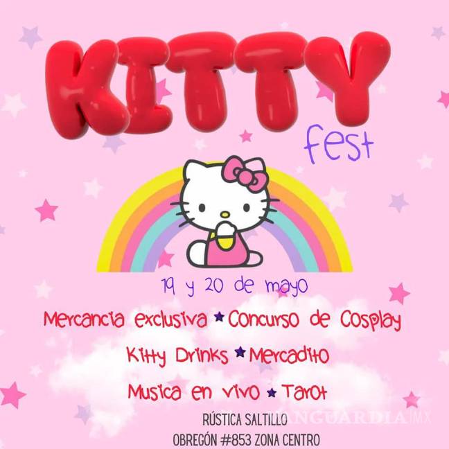 El Kitty Fest iniciará este viernes 19 a las 16:00 horas a las 20:00 horas, sin cover, mientras que el sábado iniciará a las 12:00 horas y a partir de las 16:00 horas se cobrará un cover de 15 pesos para niños y estudiantes y 30 pesos para adultos. Es un evento familiar.