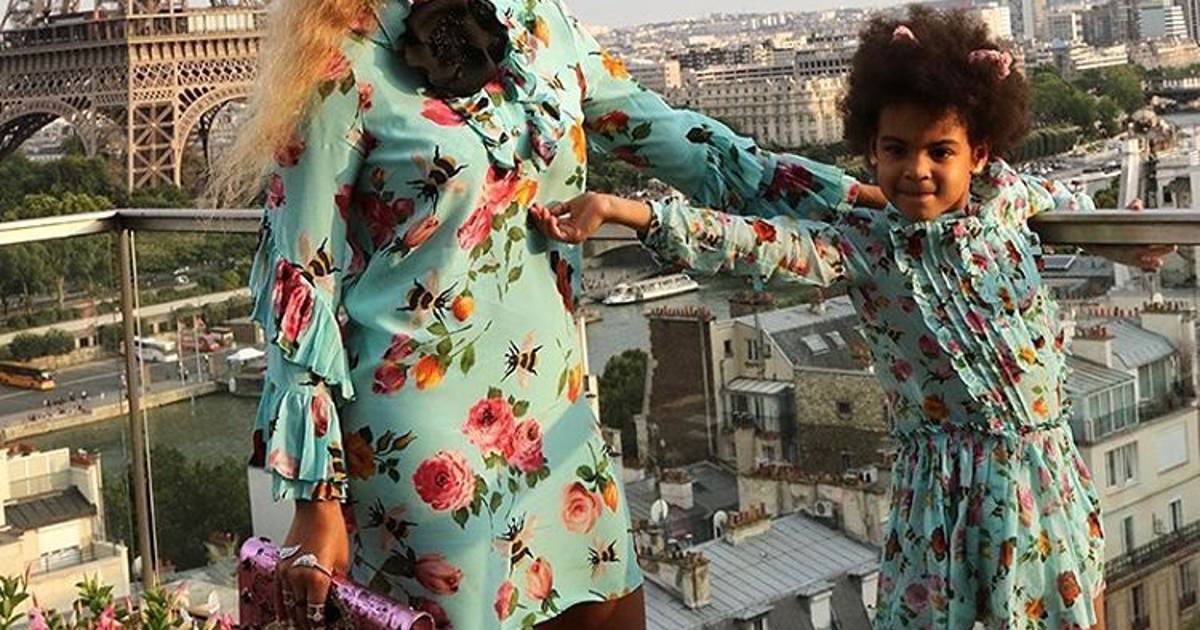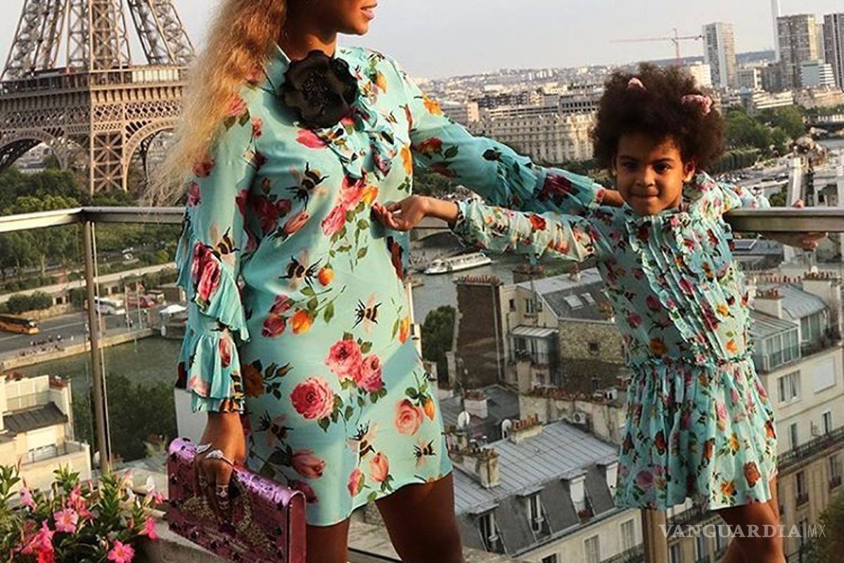Sumándose a esta tendencia, Beyoncé posó junto a su pequeña hija Blue Ivy frente a la Torre Eiffel en una sesión de fotos preparada por Gucci. Madre e hija portaban un vestido color verde menta con un estampado de flores y zapatos rosas.