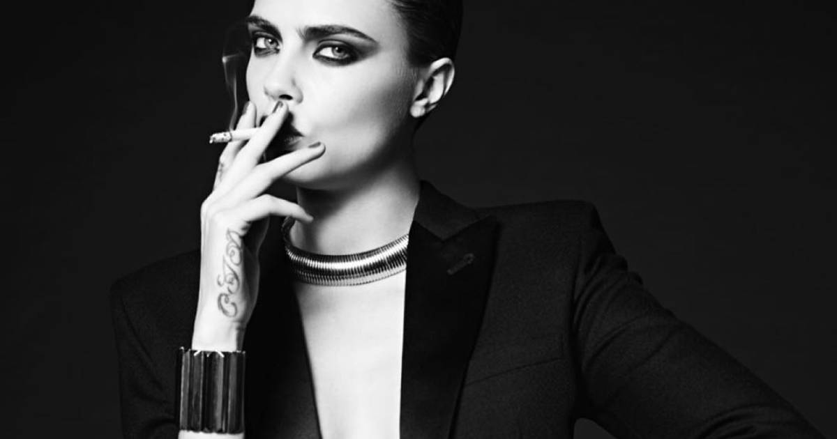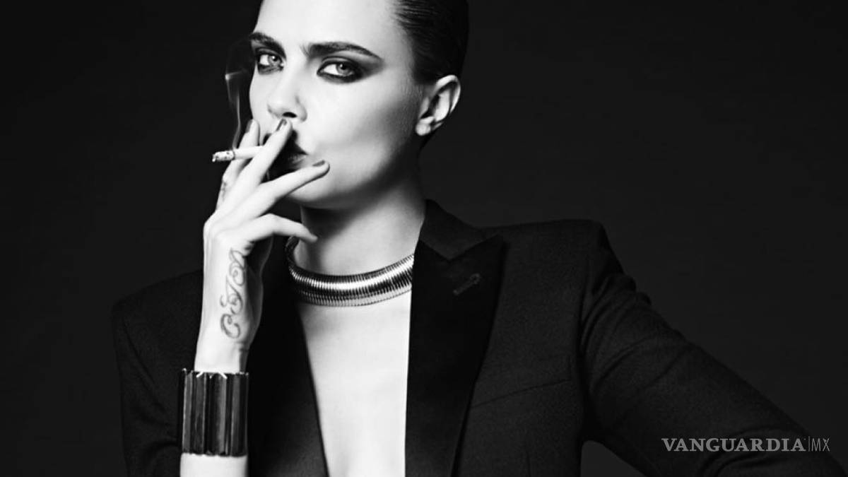 Musa de Yves Saint Laurent En blanco y negro; elegante, pero sobria; una mujer adulta y segura de sí misma, con la barbilla alta y un cigarro en la mano. Así presenta Yves Saint Laurent a Cara Delevingne es las primeras imágenes de La Collection de Paris, ideada por Hedi Slimane —director creativo de la maison hasta este viernes—. Eso sí, la esencia de la top se mantiene intacta con sus peculiares muecas.