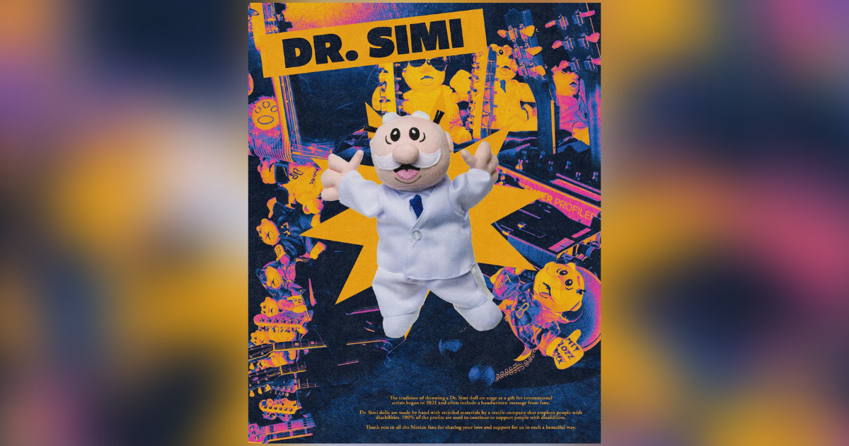 “La tradición de lanzar un muñeco del Dr. Simi al escenario como regalo a artistas internacionales, empezó en el 2021, usualmente incluye un mensaje escrito por las fans”, escriben.