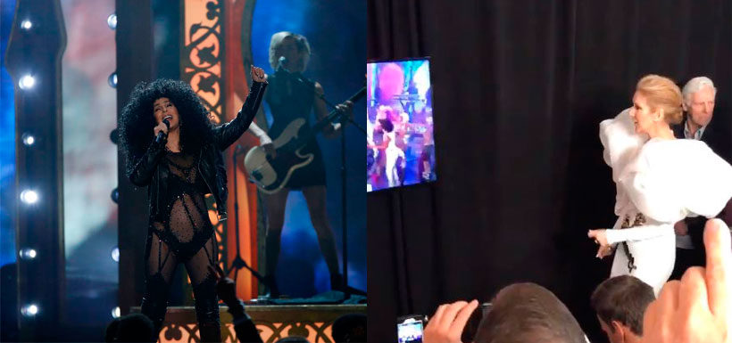 Cuando Cher subió al escenario para interpretar viejos éxitos: “Belive” y “If I Could Turn Back Time” mientras utilizó su icónica vestimenta de 1989. Durante su actuación, Dion se detuvo para observar a su compañera artista a través de un monitor y terminó por incitar cantar el coro de “Believe”.