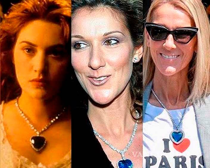 La cantante Céline Dion revivió la nostalgia de sus seguidores al aparecer usando el mítico collar de corazón azul de la película Titanic en la Semana de la Moda en París.