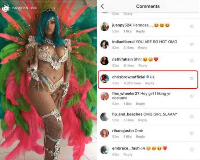 Rápidamente, su comentario se llenó de comentarios como "deja a Rihanna tranquila", "vete de aquí", "Por favor, mantén tu energía negativa lejos de Rihanna @ChrisBrownOfficial".