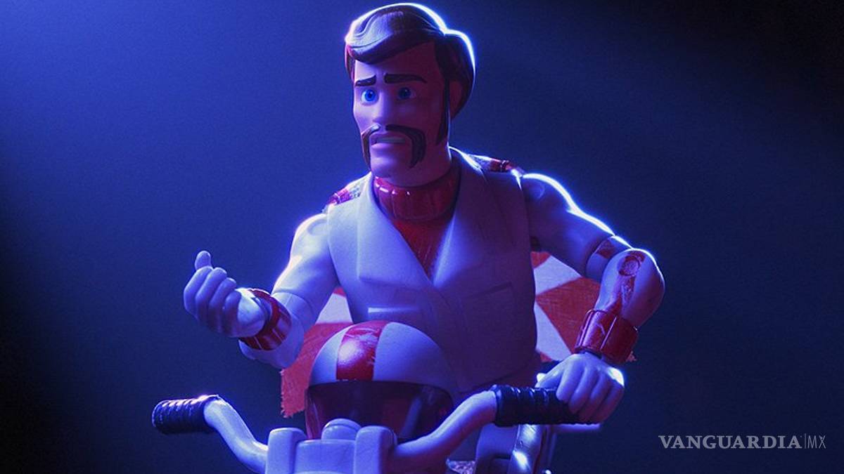 “Duke Caboom es un juguete de los años 70 basado en el mayor doble de acción de Canadá. Montando su poderosa Caboom-cicleta, Duke siempre está preparado para mostrar sus trucos con confianza y arrogancia. Sin embargo, Woody aprende rápidamente que Duke tiene un talón de Aquiles: nunca ha podido hacer las increíbles acrobacias anunciadas en su propio comercial de juguetes. Durante años, Duke ha estado sentado en una tienda de antigüedades, reviviendo constantemente los fracasos de su trágico pasado”.