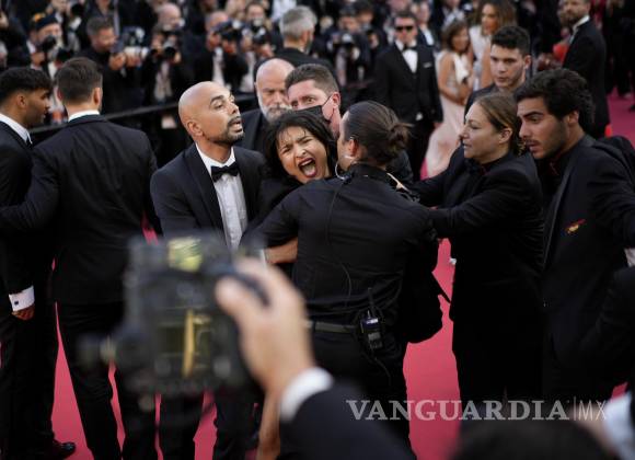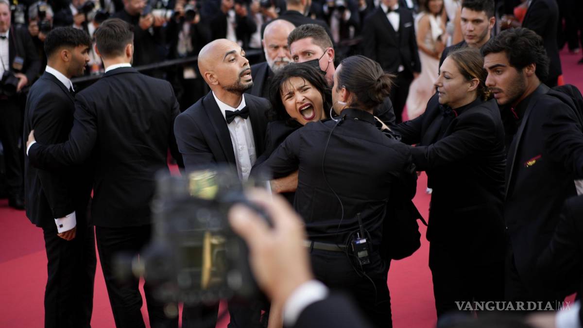 Mientras la mujer gritaba “¡No nos violen!”, fue el personal de seguridad que rápidamente la rodeó y la sacó de la alfombra roja.