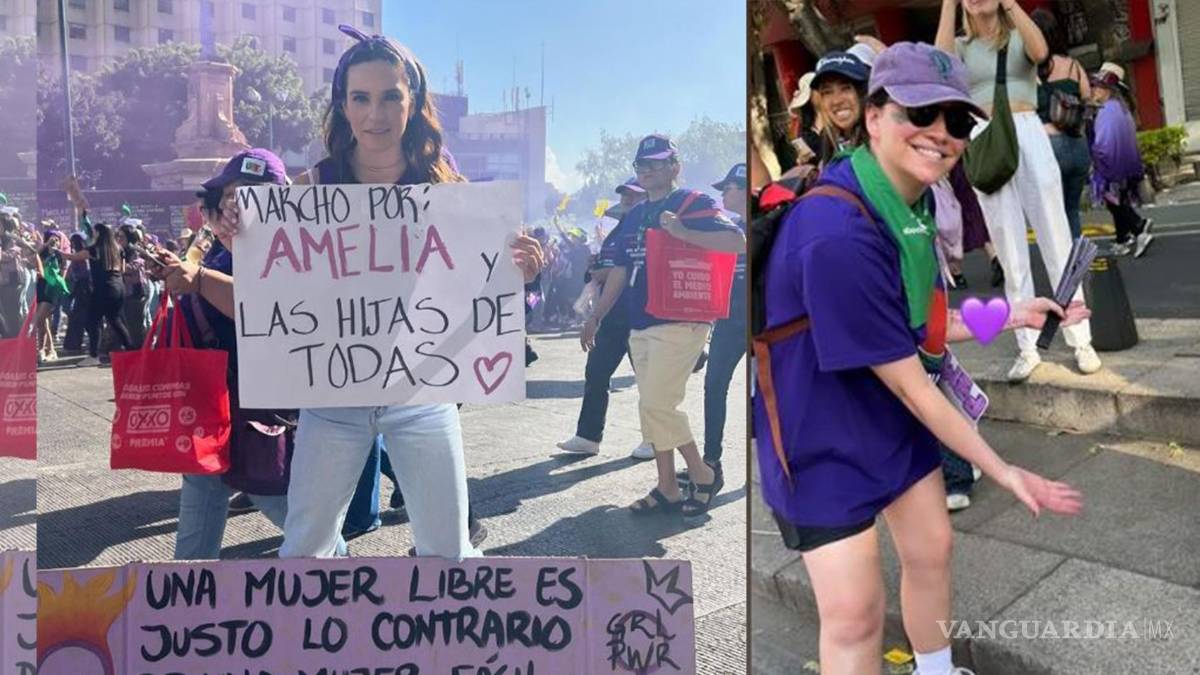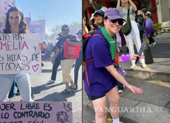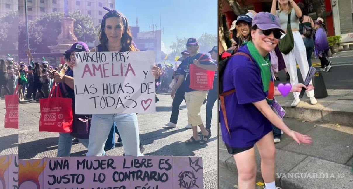 Desde temprano, la conductora de televisión Tania Rincón compartió en Instagram una imagen vestida de violeta, el color asociado al feminismo, durante su participación. Sostenía un cartel con la frase “Marcho por Amelia y las hijas de todas”, en referencia a su pequeña de tres años.