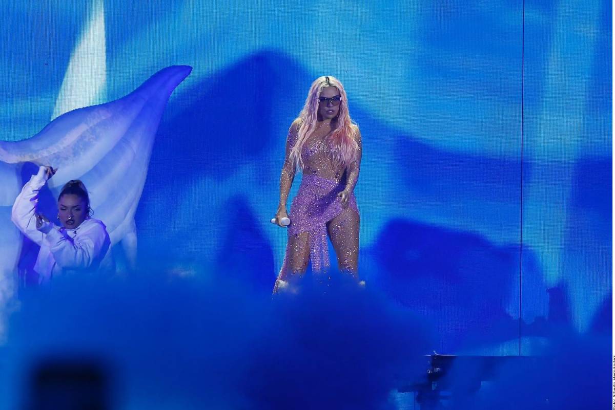 Esa sirena apareció gigante al centro del escenario para que Karol G subiera junto a 13 bailarinas a armarla en grande.
