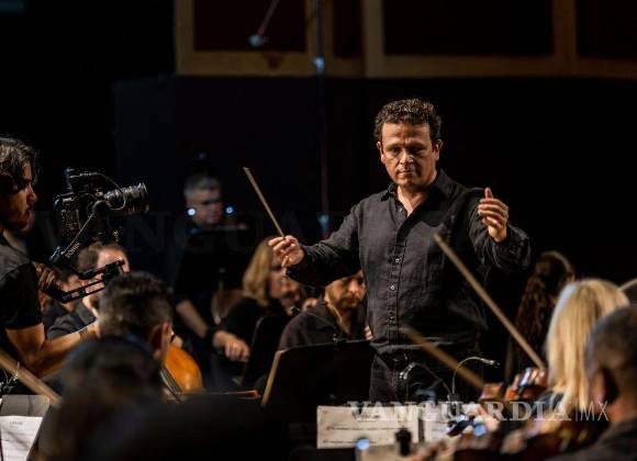 “La verdad traigo un nudo en la garganta de escuchar mi música y venir a mi país, a mis tierras norteñas y dirigir”, explicó el músico regio durante la grabación musical que se realizó en el Teatro de la Ciudad Fernando Soler.
