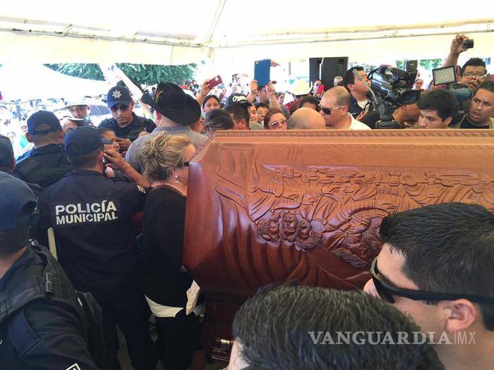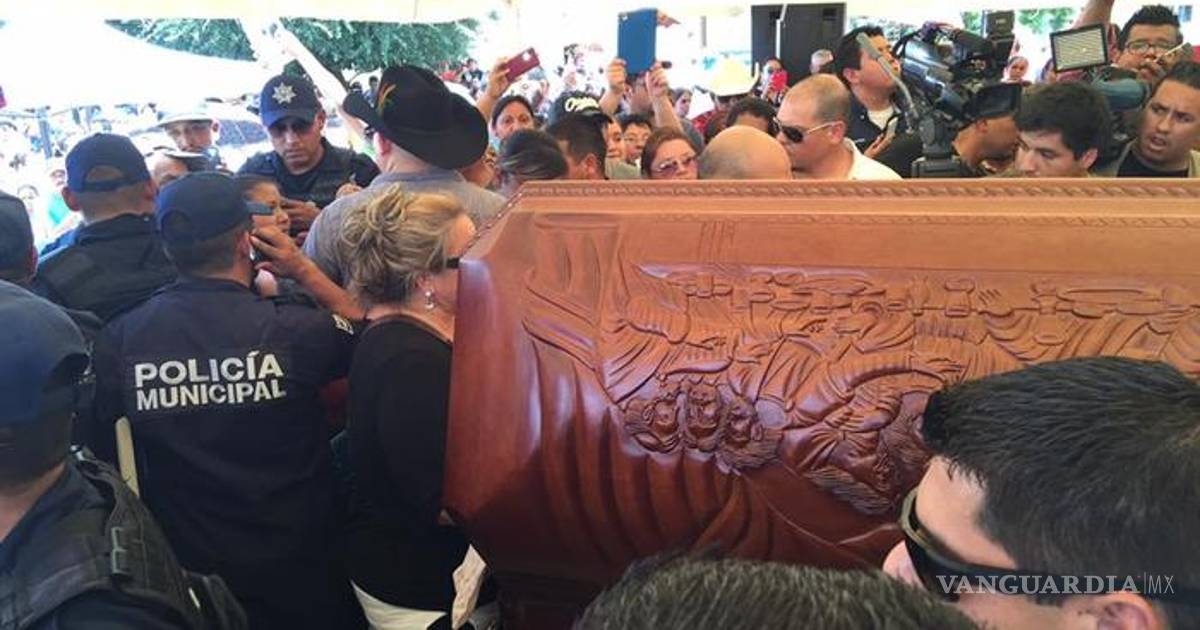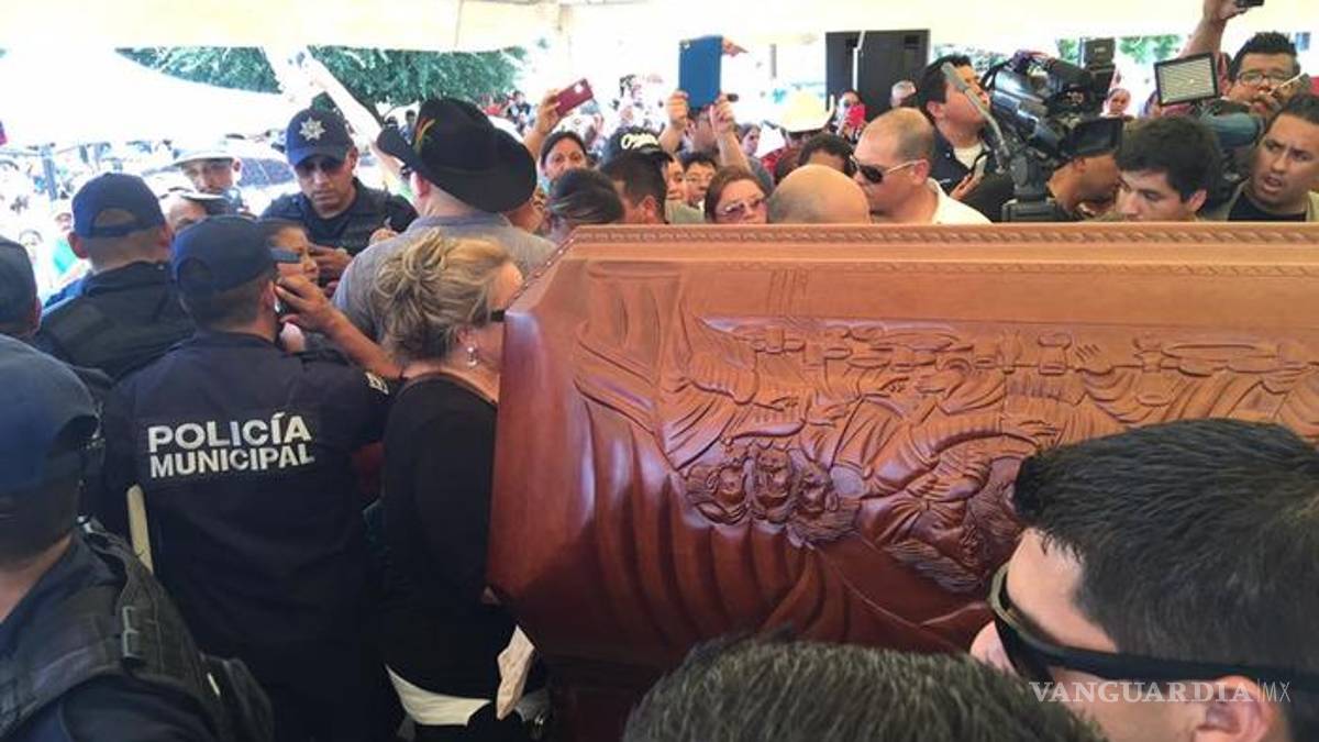 Tras su salida de las capillas, el féretro con los restos mortales del músico llegó cerca de las 14:00 horas al municipio ubicado en el sur del Estado, donde poco más de 4 mil personas ya esperaban frente al Palacio Municipal hasta donde llegó la carroza, y bajo un toldo con flores se inició con el homenaje de cuerpo presente.