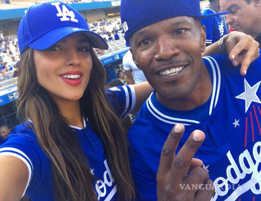 Semanas después de haber estado en un partido de los Raiders, de la NFL, la actriz y cantante Eiza González tuvo oportunidad de jugar beisbol al lado del actor estadounidense Jamie Foxx.