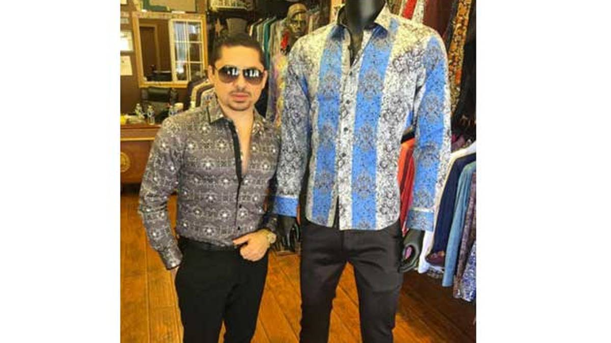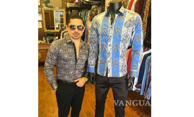 El músico angelino de origen mexicano subió a su cuenta de Facebook un vídeo en la tienda angelina Barabas y en el que posa junto a la camisa de estampado de fantasía sobre franjas verticales azules y grises que popularizó el "Chapo".