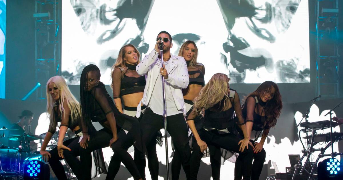 Junto a su micrófono dorado, su banda compuesta por guitarra, batería, dj, coristas y un elenco de bailarinas, la energía desbordante del joven artista contagió a los asistentes, que obedecieron al grito de "Bien fuerte Gran Canaria" del cantante, coreando letra por letra sus grandes éxitos.