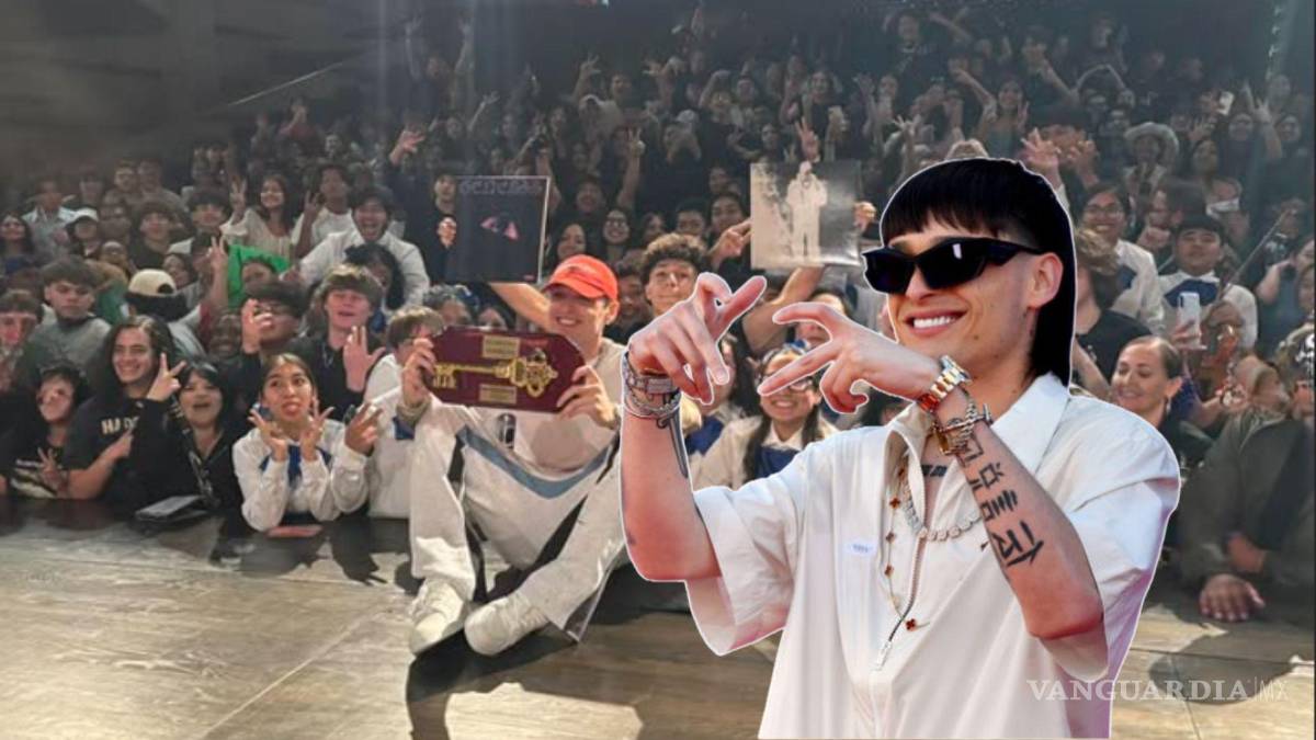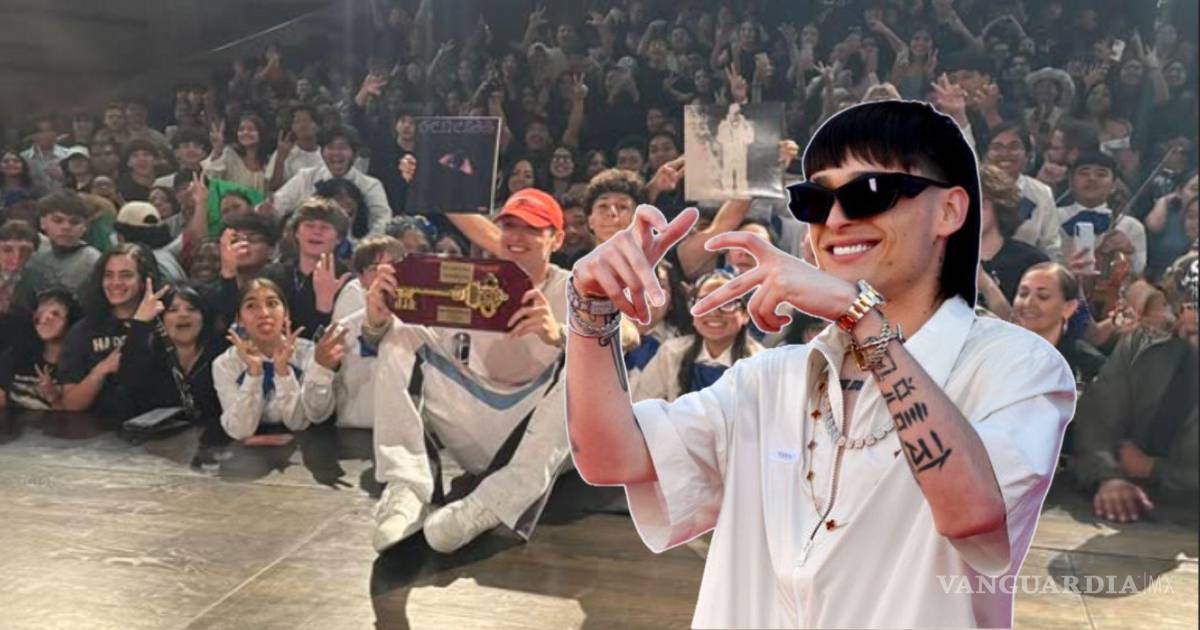 En redes sociales, la institución compartió imágenes del cantante mostrando la llave de la ciudad y conviviendo con alumnos.