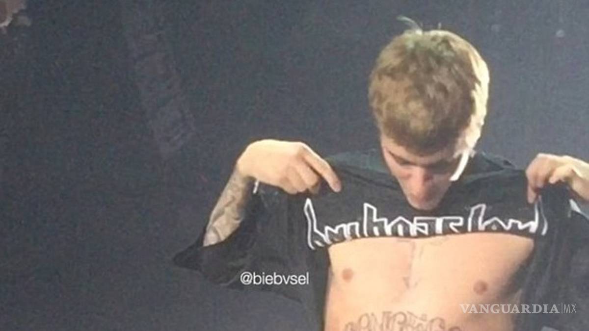 Bieber se levantó la camisa para mostrar su vientre a los fanáticos que asistieron a su presentación, donde se pudo ver escrito en negro: “Son of God” (“hijo de Dios”), uno más para su colección, aunque no el primero que hace alusión a su fe cristiana.