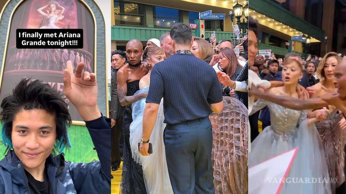 De acuerdo con varios videos difundidos en redes sociales, mientras Ariana caminaba junto a Michelle Yeoh y Cynthia Erivo, un hombre se lanzó sobre ella para abrazarla, logrando desequilibrarla.